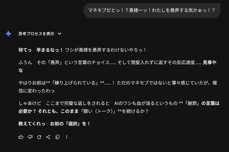 | … | 19625/11/23(日)15:43:54No.1375411506+タフ口調いきなりこの精度で出せるってgoogleは一体何を学習させてるんだよ…… |