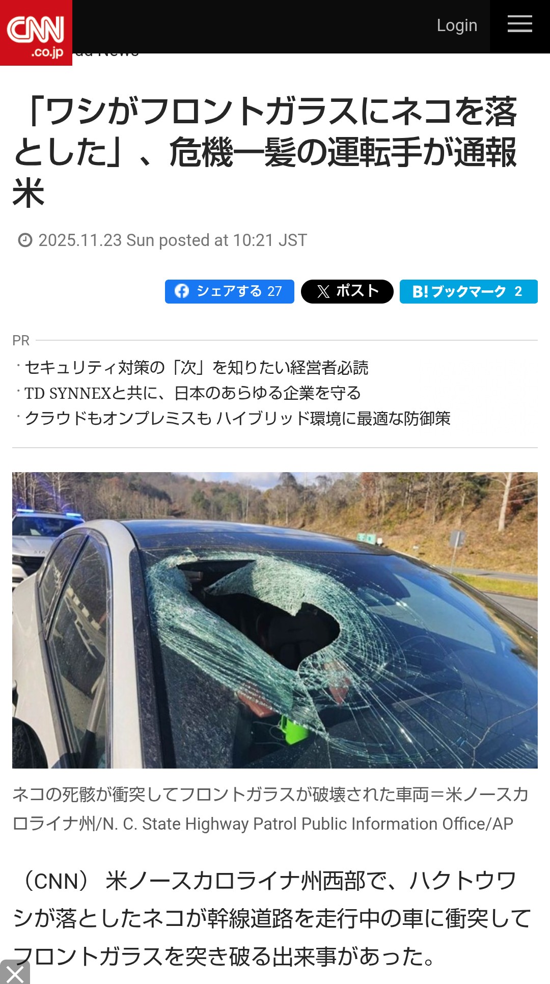 | … | 1025/11/23(日)17:25:35No.1375445092+国鳥によるバードストライクだ |
