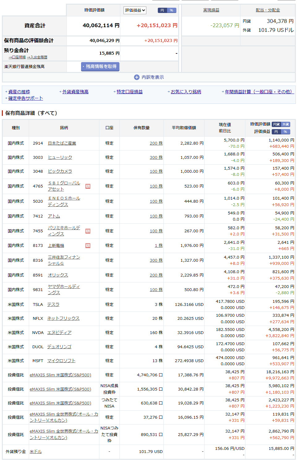 | … | 8825/11/25(火)23:10:06No.1376263169+ずーっとマイナスだった成長枠で買ったのがやっとプラスになったので売っ払った |