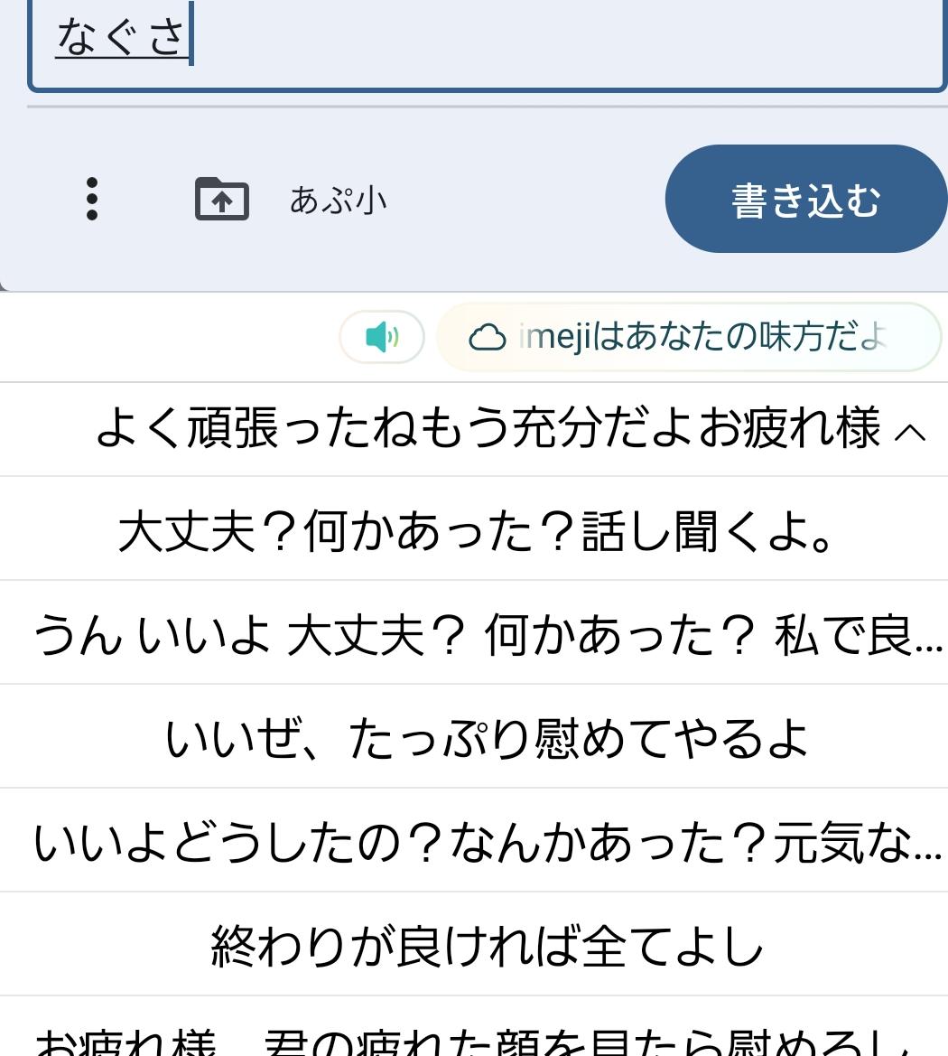 | … | 59125/11/26(水)01:38:36No.1376304759+>>Simejiでナグサって入れるとイマジナリーアヤメがいっぱい出てきて面白いよ |
