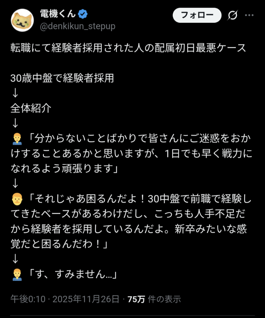 | … | 725/11/26(水)18:29:54No.1376470615そうだねx24>経験者採用ならそうなのでは…? |