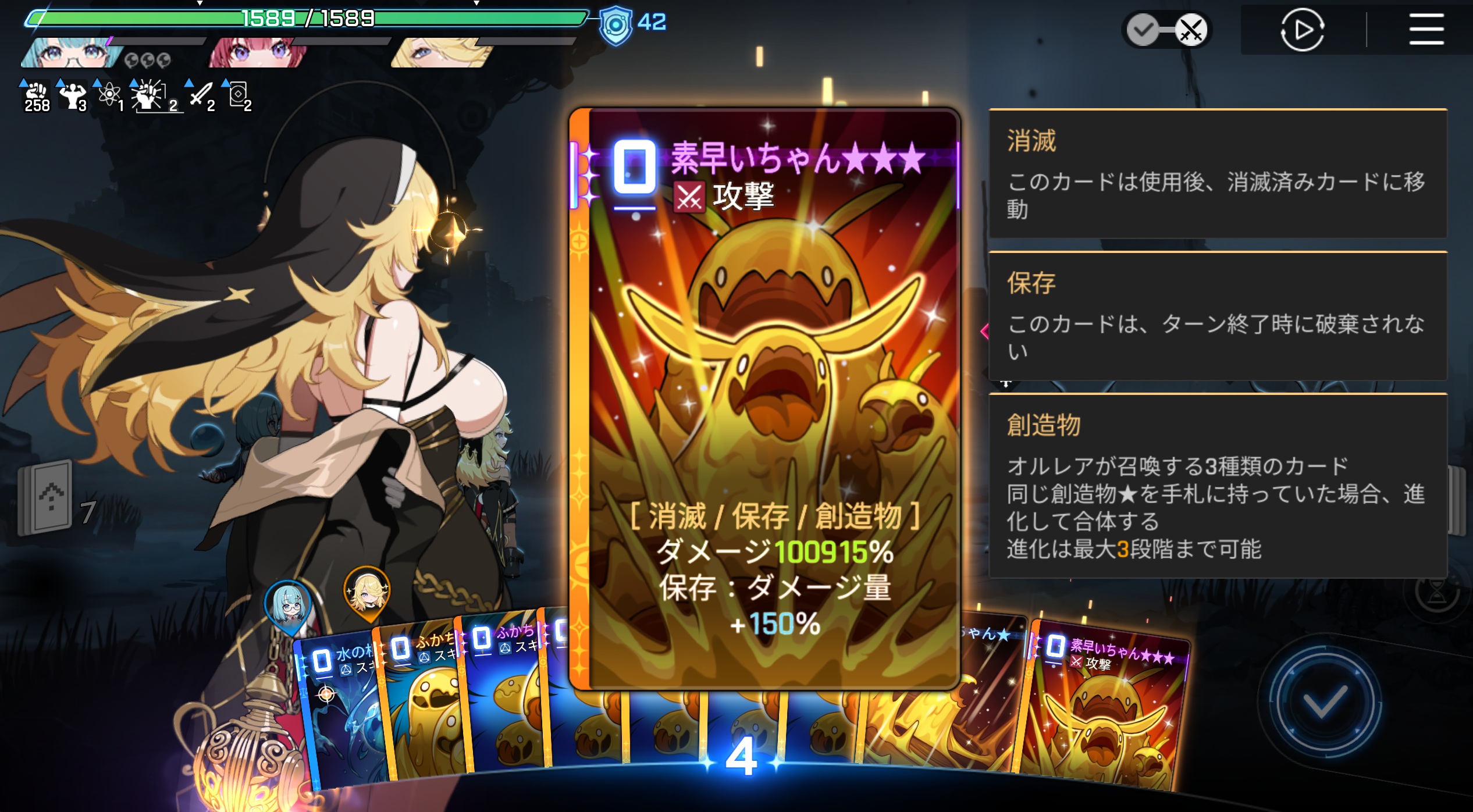 | … | 6325/11/27(木)01:03:10 ID:1jvN.5JcNo.1376611606+>カードの心臓は固定ダメージなのでそんなには…100未満のダメージ4発だけどMAXまで4ターン掛かるのが難点 |
