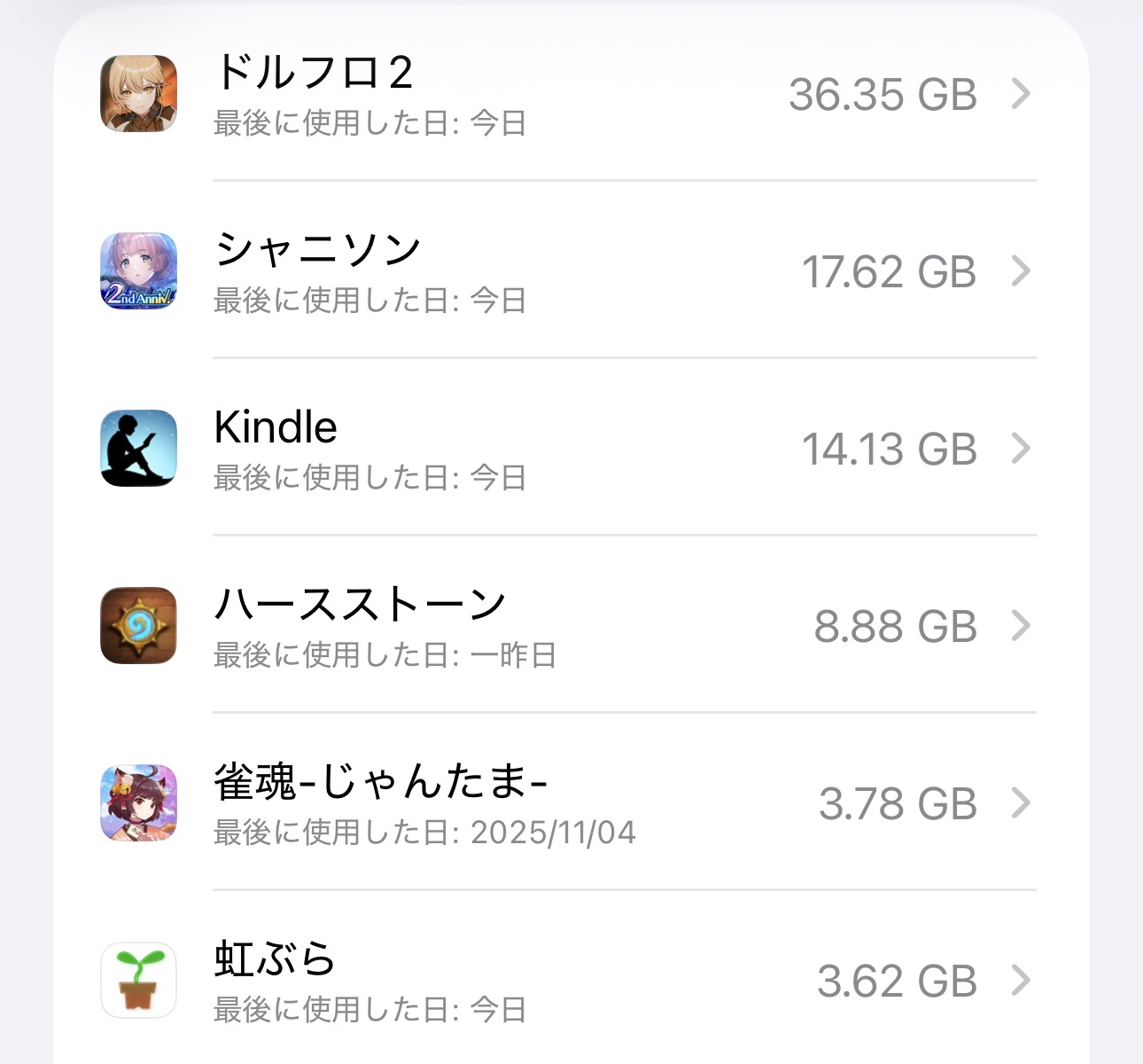 >ドルフロ2がアプリの中で2番目の容量喰いになっていた
