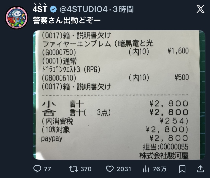 | … | 10925/11/27(木)18:13:06No.1376777438そうだねx1そいうレシート晒したいんなら一本だけ買えよ! |