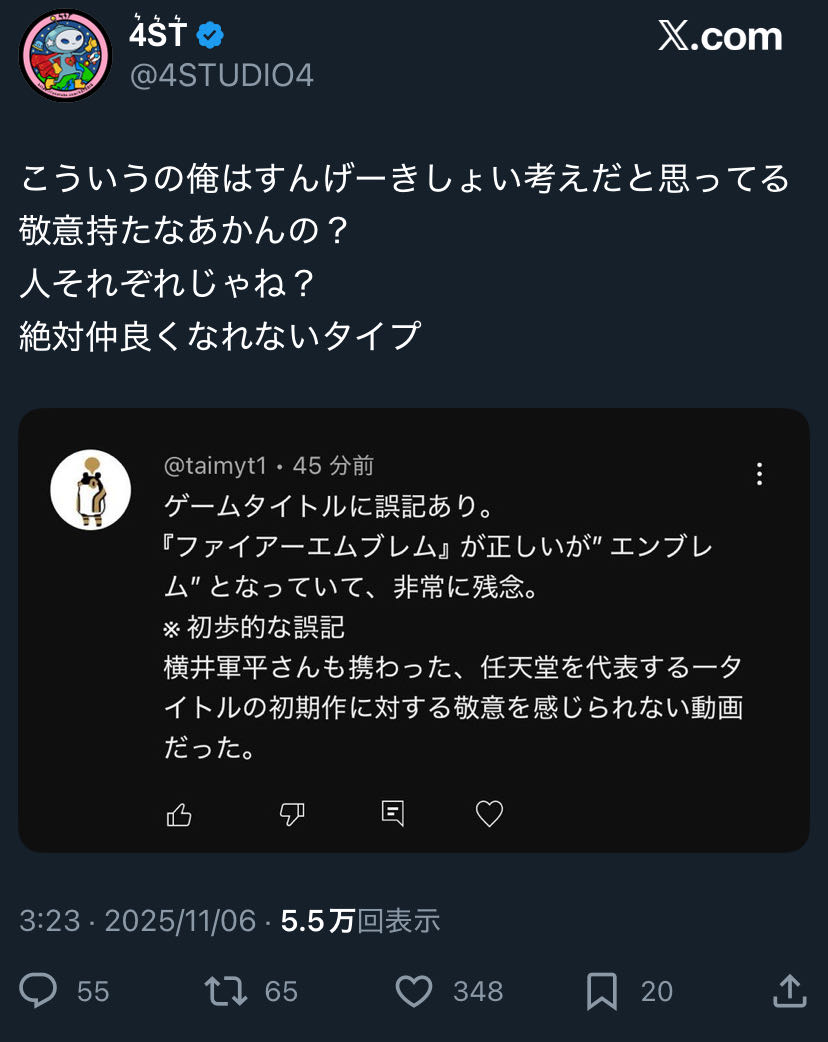 | … | 10025/11/27(木)18:08:53No.1376776243+キノピオっつうか公式でがFE警察やってたからなぁ |