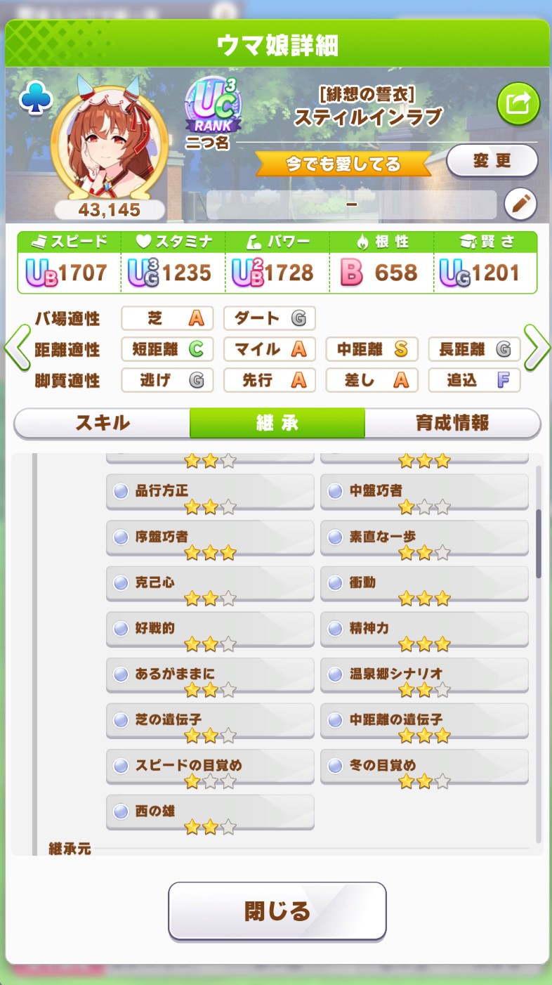 | … | 26525/11/28(金)13:34:13No.1377023446+>他はだいたいスティルが称号とって長距離は水シュヴァルがとったけど短距離だけ上手くいかないのだ |