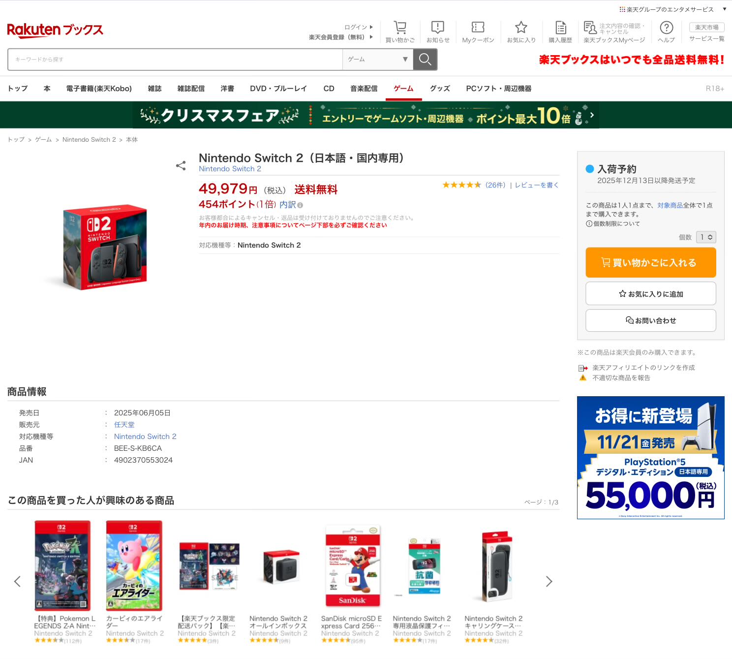 | … | 92025/11/28(金)21:53:25No.1377174220そうだねx1>近所のノジマらがずっと入荷なし表記で悲しいから三木谷に頼るしかなかった… |