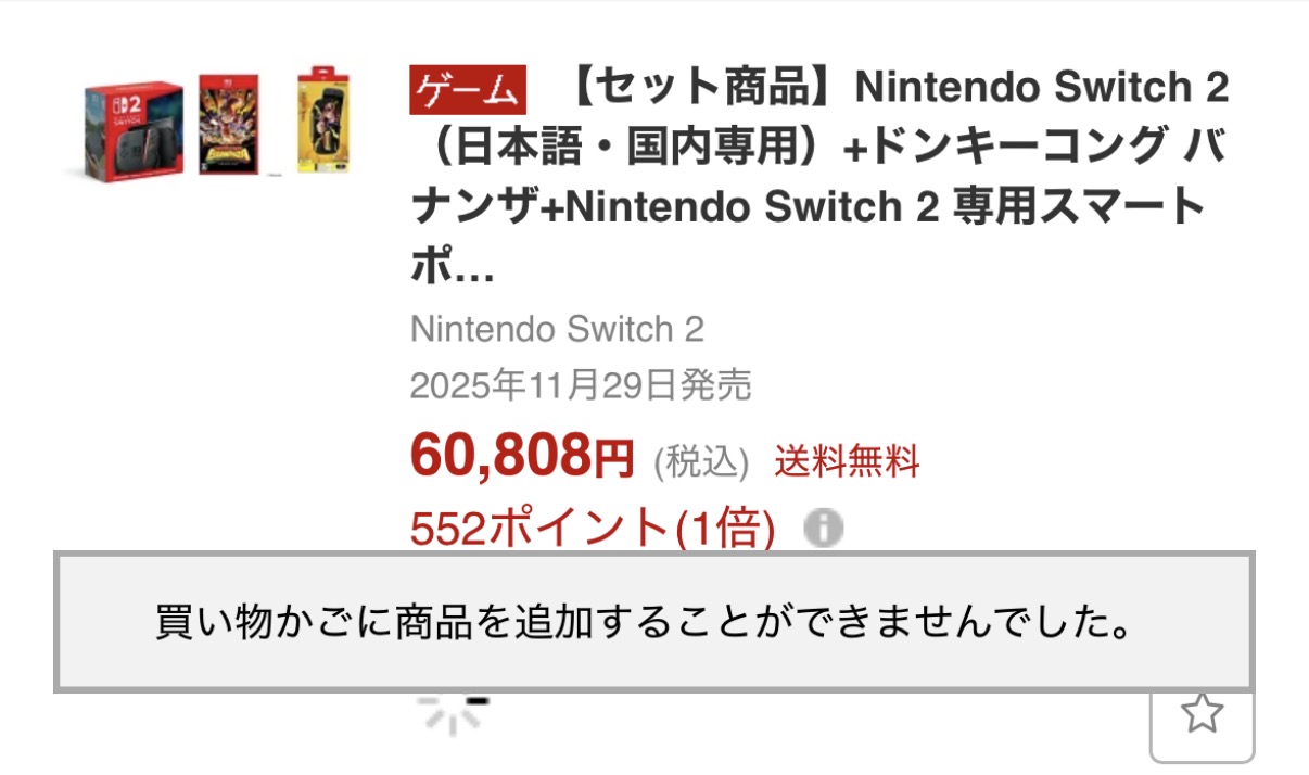 | … | 96225/11/28(金)21:56:22No.1377175539+今更スレ立ってるの気付いたけど本体のみカゴに入れたら無限アクセス集中してますで弾かれてぬあああってなった |