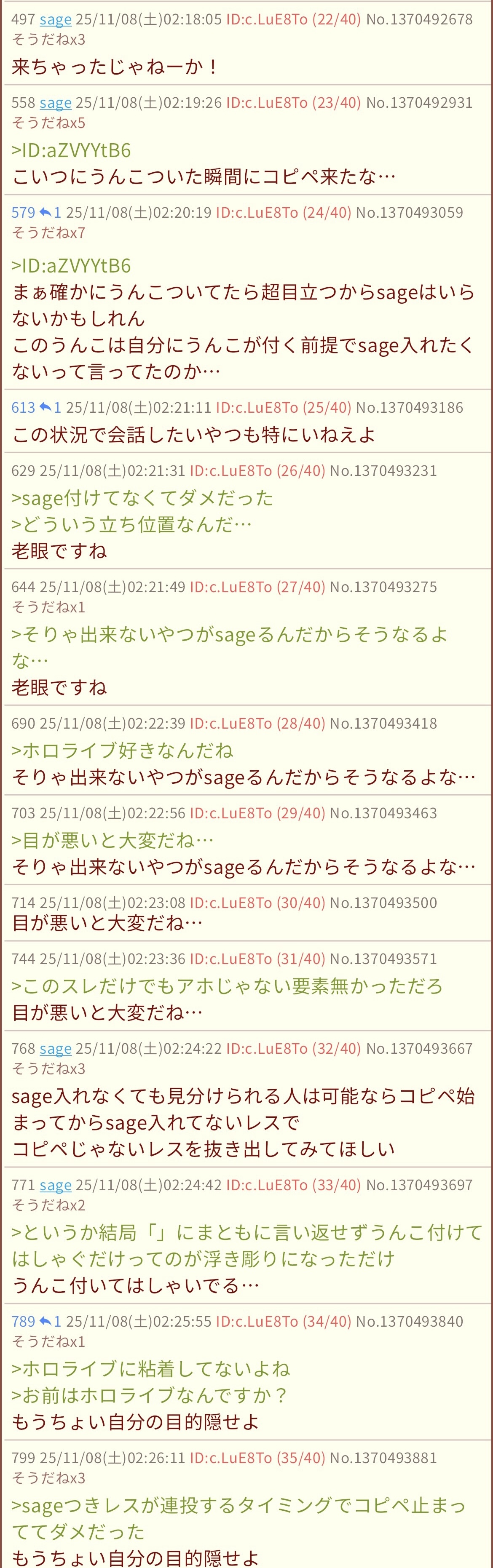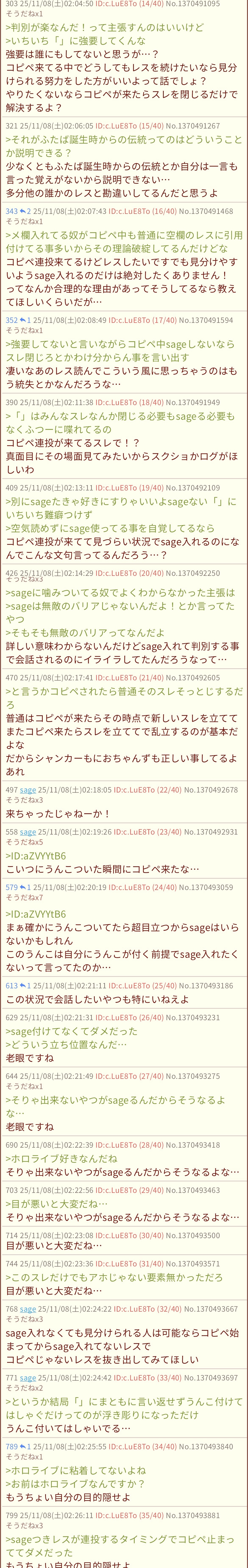 | … | 2425/11/28(金)23:31:06No.1377212382そうだねx1>コピペ中にsage入れて会話するなって事? |