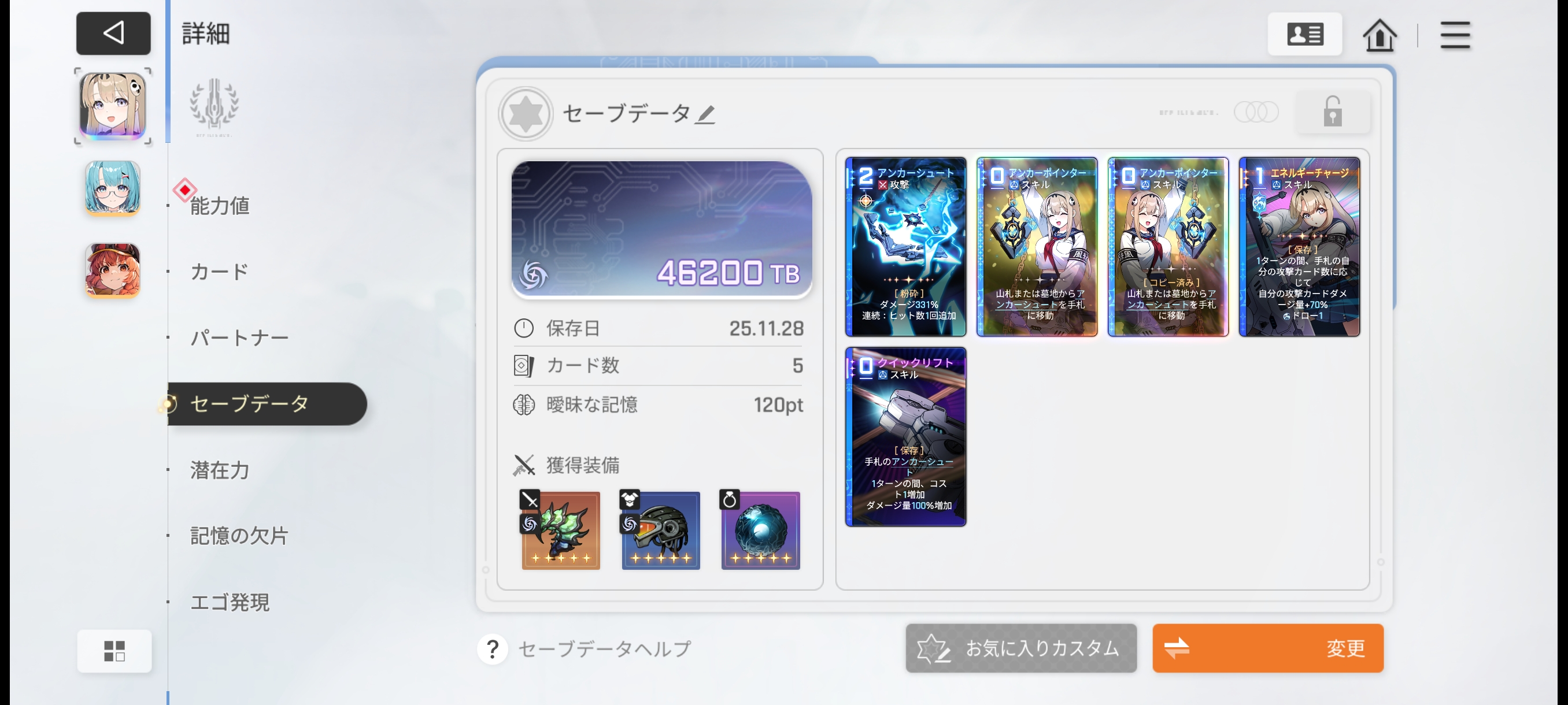 | … | 3425/11/30(日)12:10:59No.1377695694+レイちゃん入れて基礎倍率上げて使ってるけど連撃回数の担保が難しい |