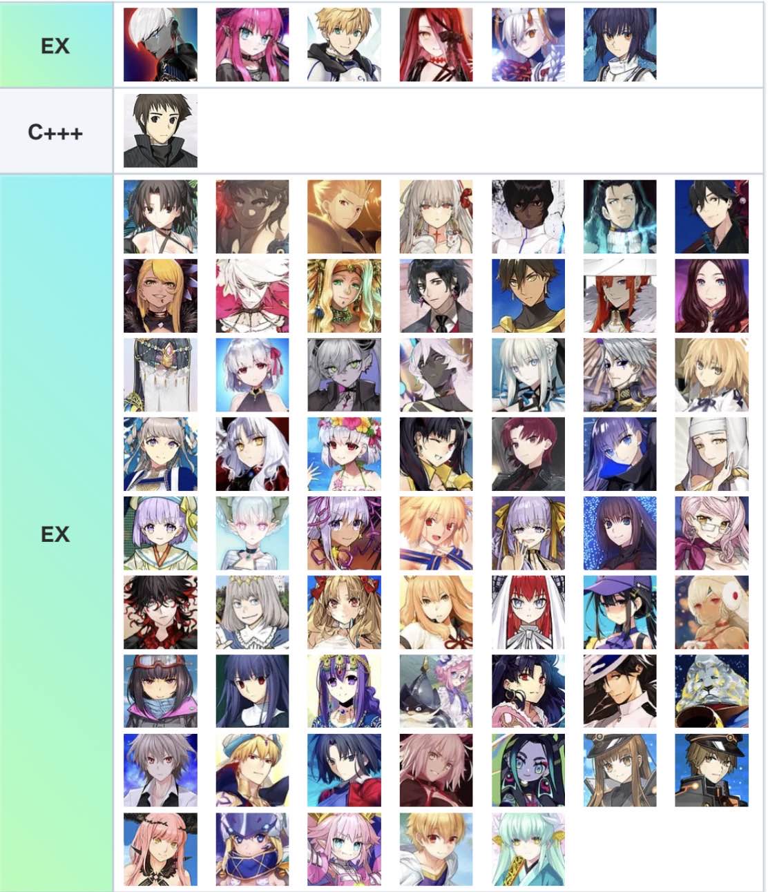画像は宝具EXの鯖一覧