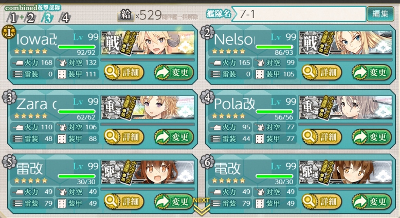 遊撃部隊7隻の旗艦に野崎を入れると無料で道中支援艦隊6隻がキラキラしちまうんデース