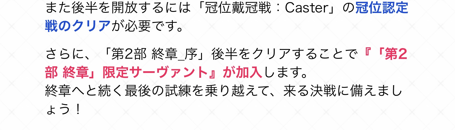 | … | 5425/12/01(月)20:48:24 ID:MqmIzFKINo.1378242336そうだねx1これ20日までに今までの冠位戦無料全開放みたいな奴無い感じ? |