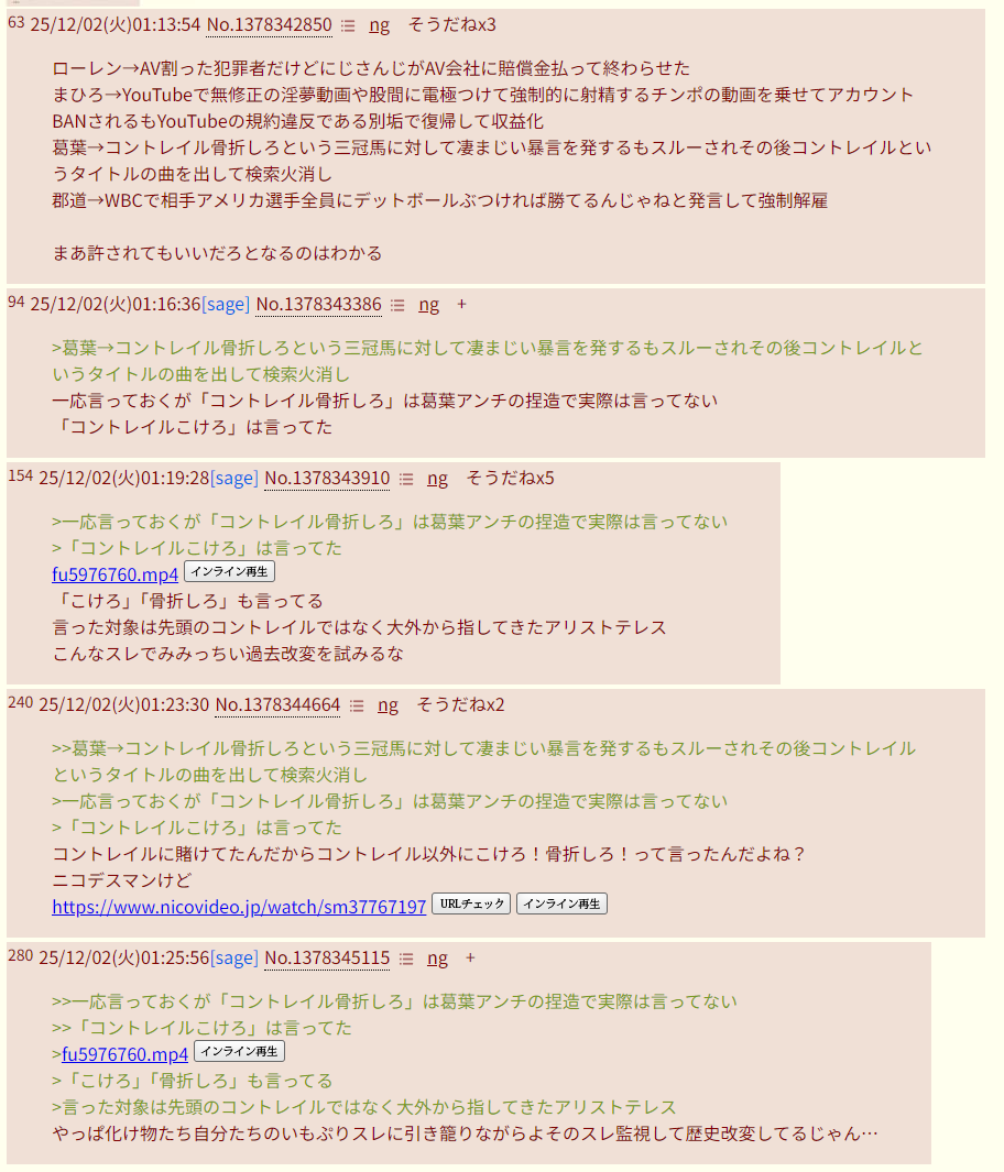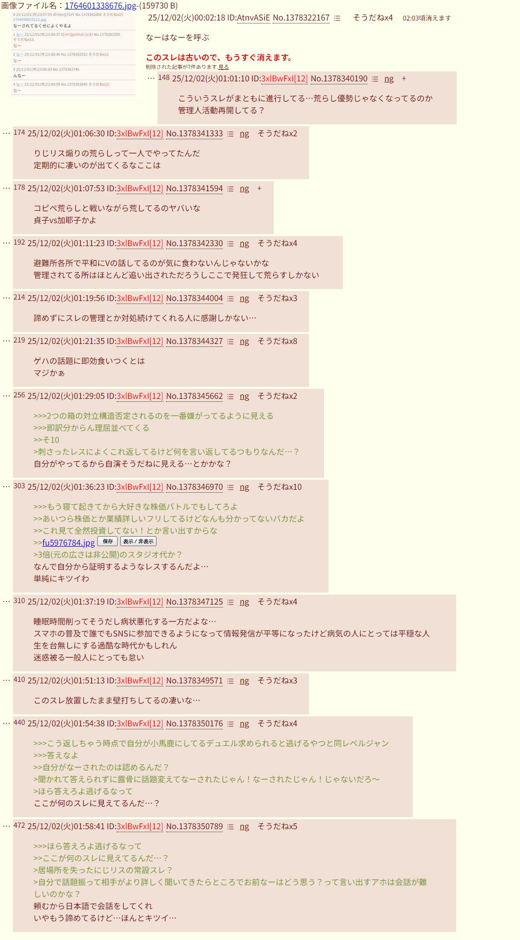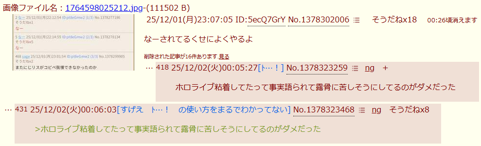 | … | 1025/12/02(火)00:10:38No.1378325168そうだねx10>ID:LlBQ7xaY |