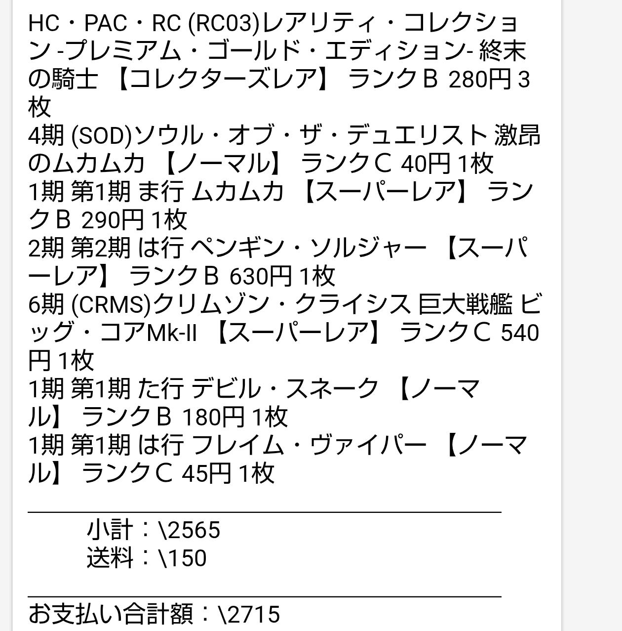| … | 10625/12/02(火)22:20:29No.1378627972そうだねx1遊戯王もシングル価格高くなってきて良かったな |