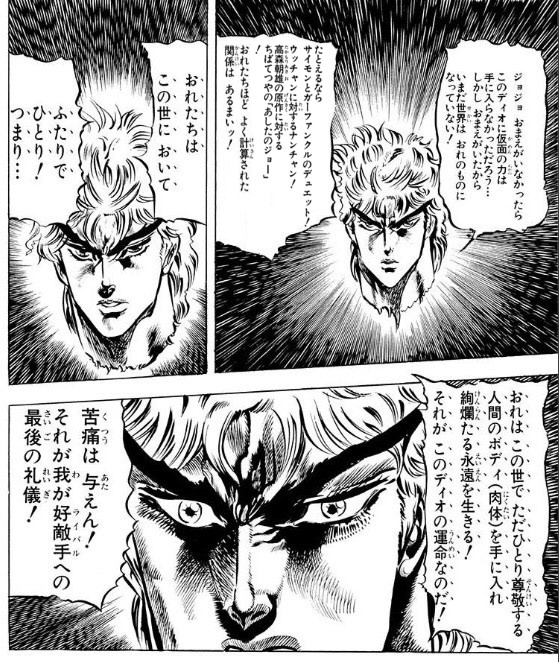| … | 7125/12/03(水)07:52:16No.1378720350+ディオがジョナサンに敬意を払いつつもマジで自分のことしか考えていなくて |
