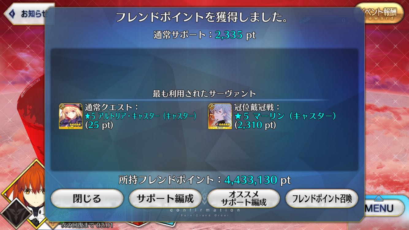 | … | 91625/12/03(水)19:56:38 ID:DMy72/1ENo.1378888952+認定戦弓の見敵でめっちゃ宝具ダメ減らせた |
