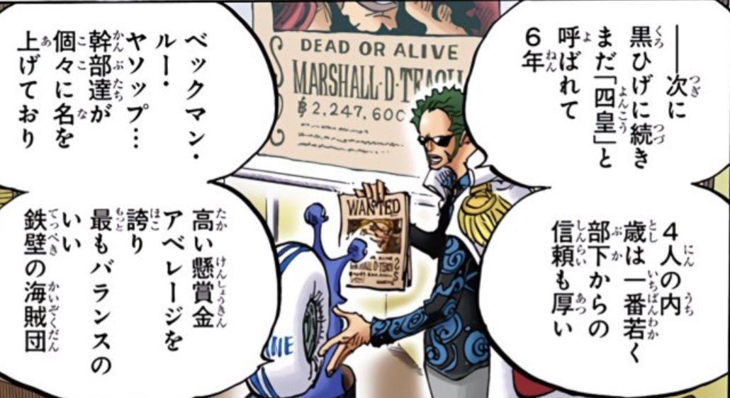 >なんかもう赤犬やシャンクスすらどこで誰と戦うんだよって持て余しそうなのに白しげとウルージって今後役割持てねえだろ