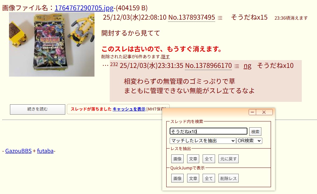 | … | 7025/12/04(木)00:51:39No.1378986975+ゴミ |