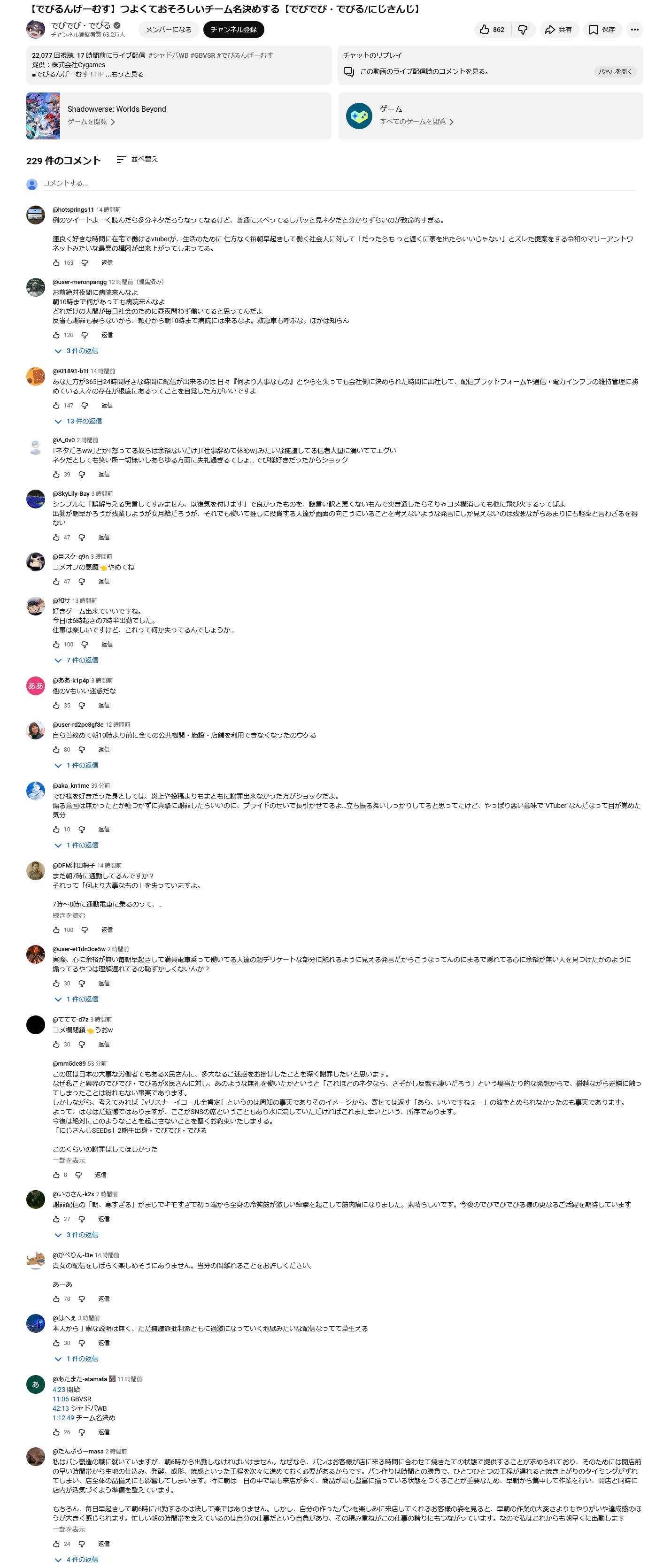 | … | 4625/12/04(木)07:18:19No.1379014908+サロメと同一人物説あるからサロメの生配信ででび関連の嫌がらせ長文を実況内容関係なくずっと流して |