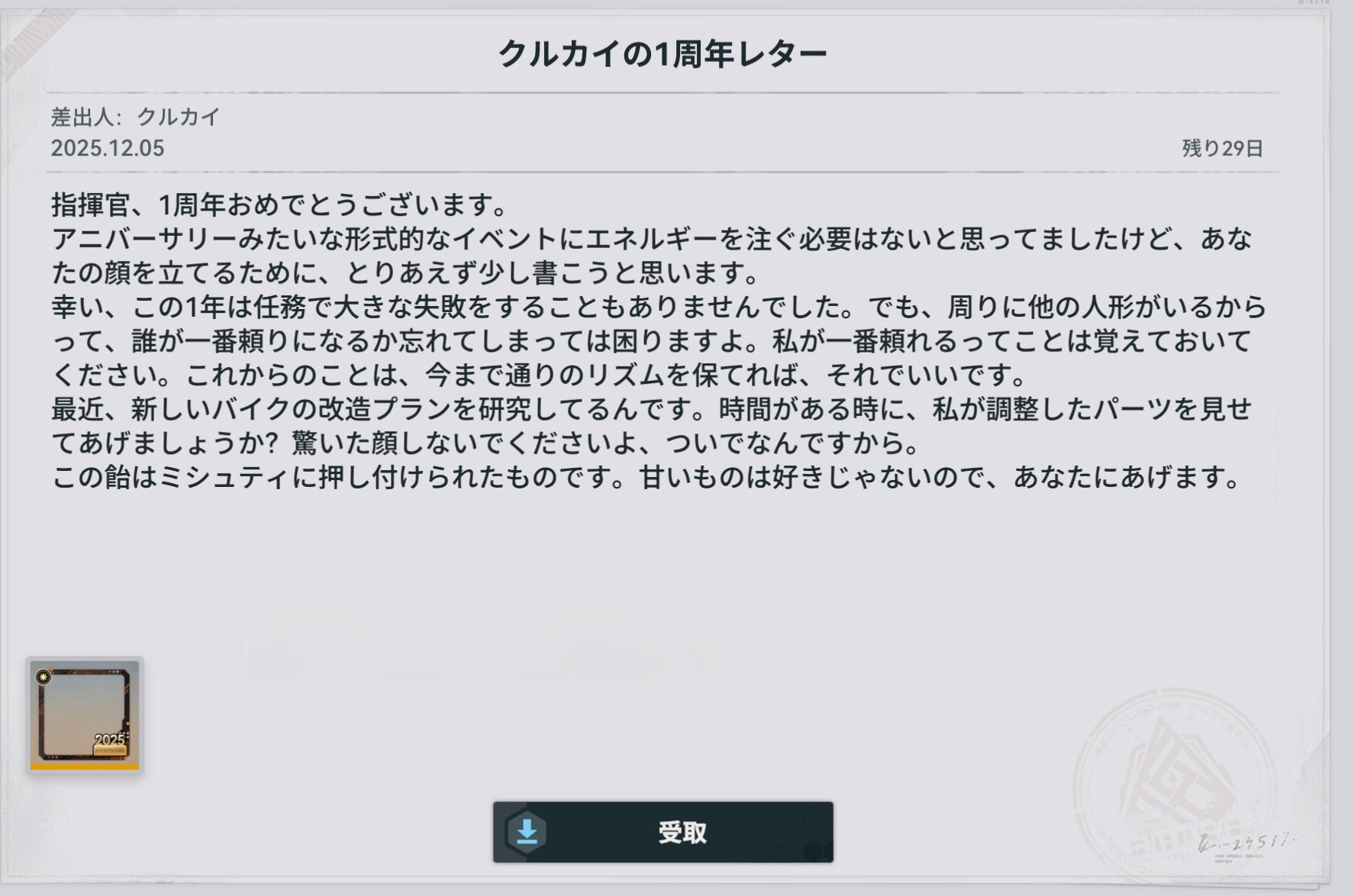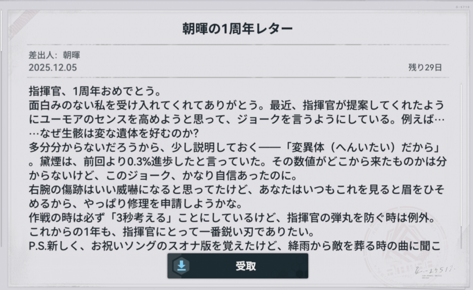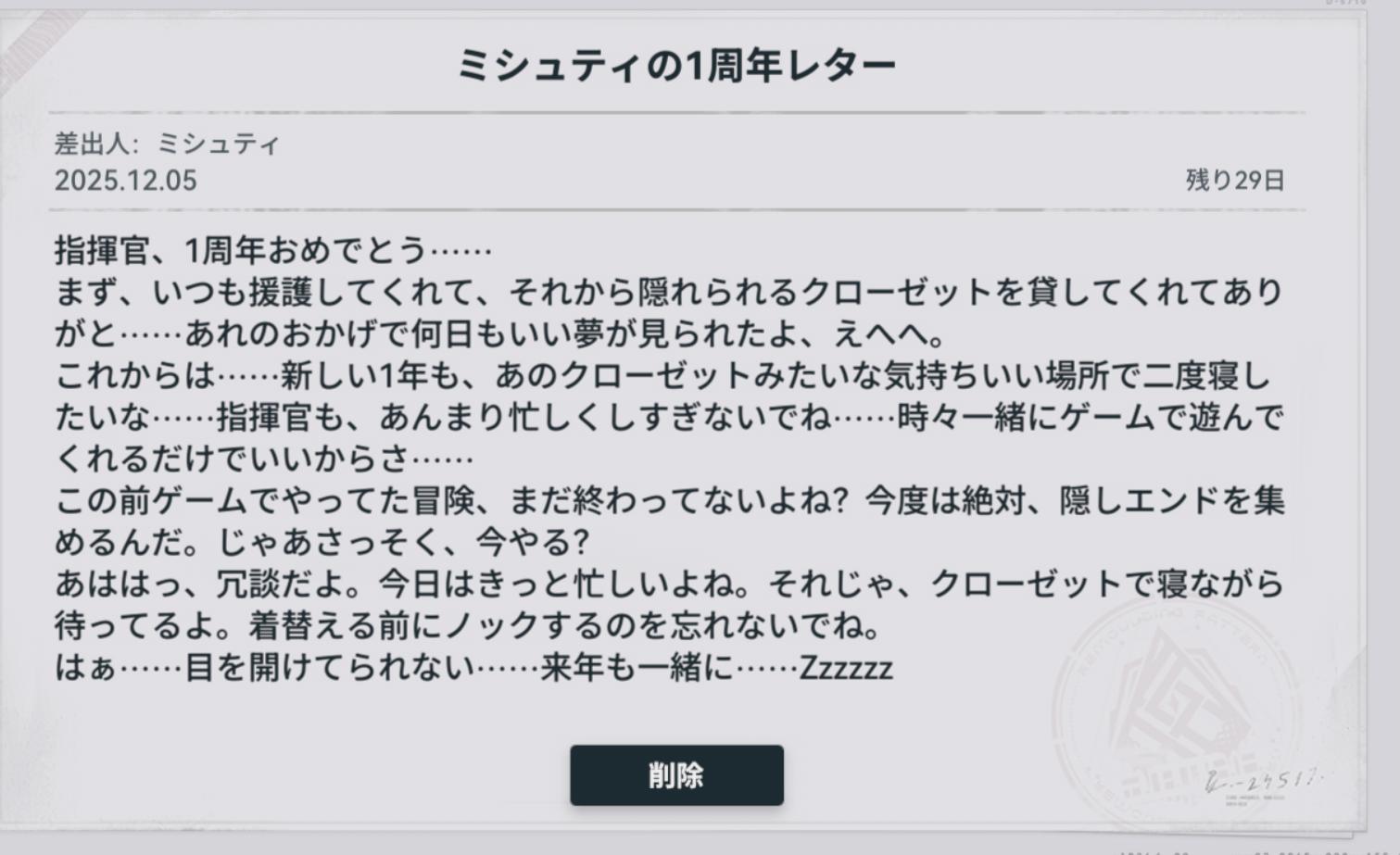 | … | 6025/12/05(金)08:01:54No.1379336794+「」の集合知で全人形の1周年レターが読める! |