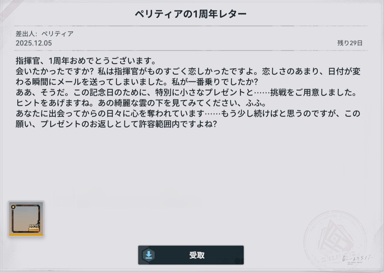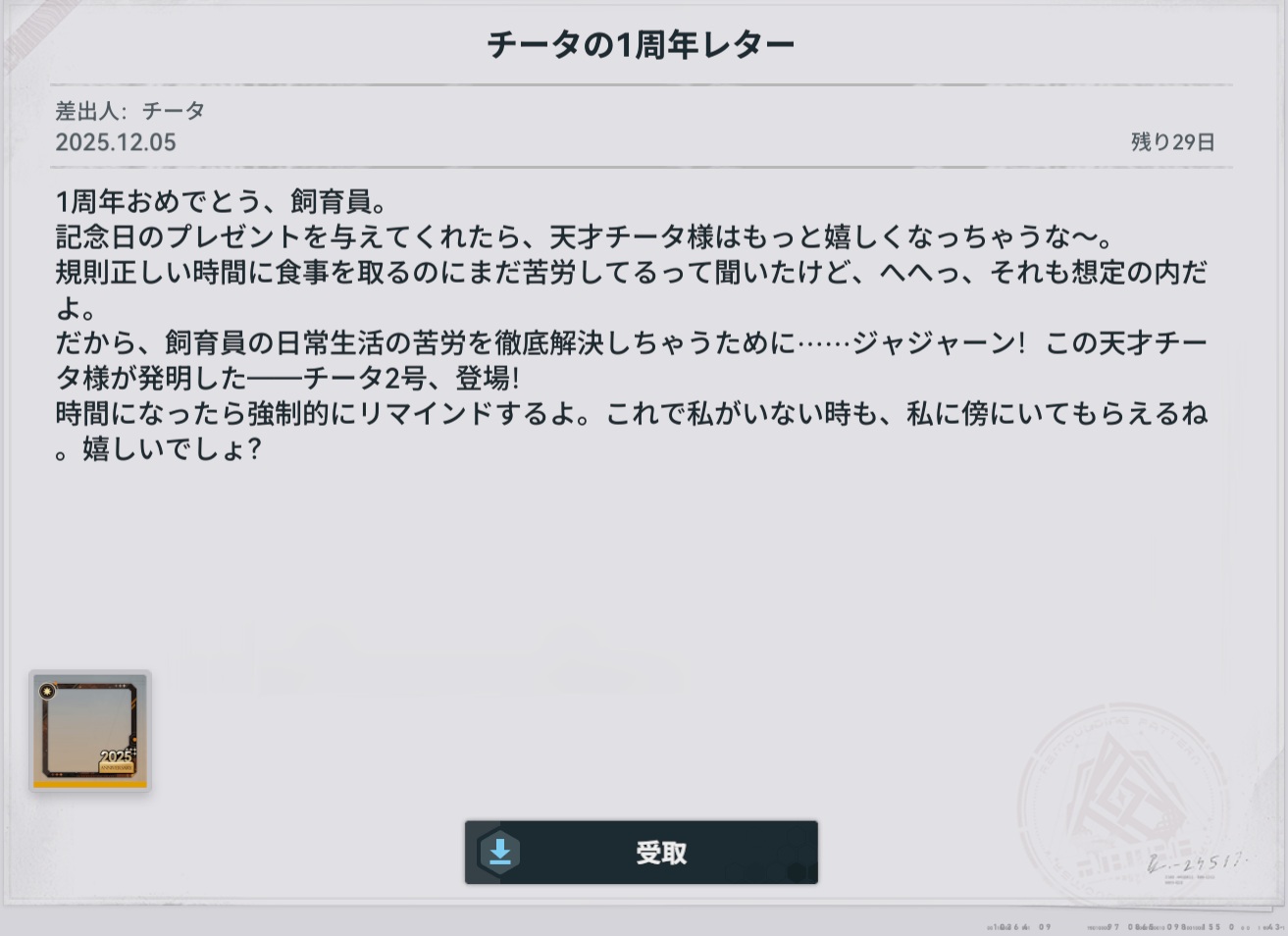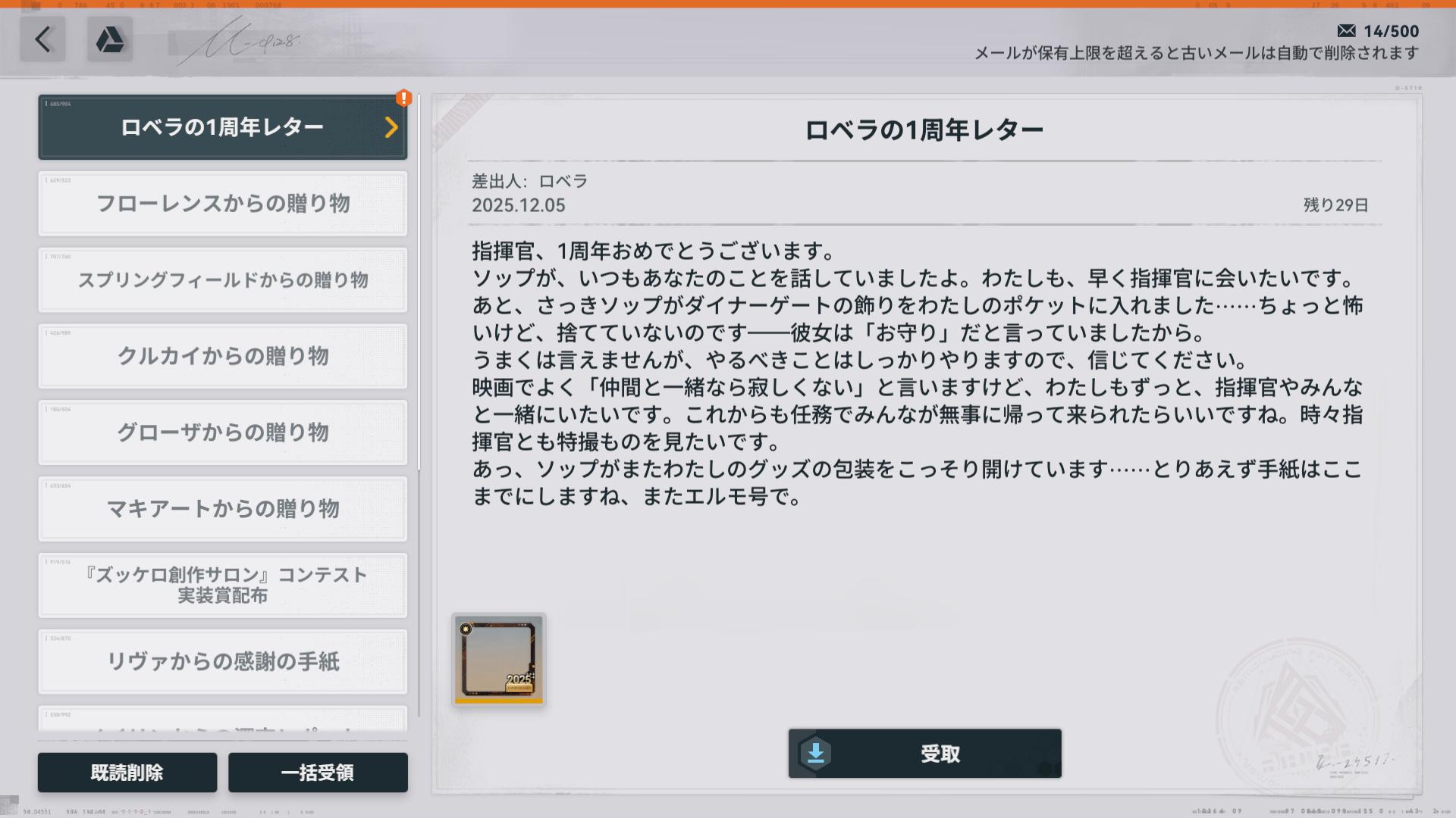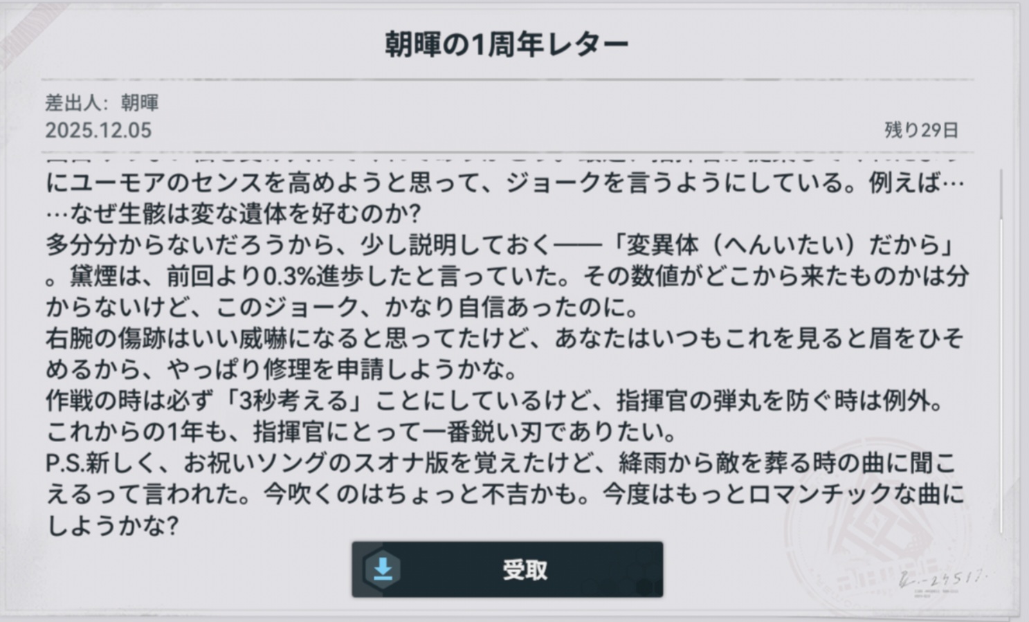 | … | 6025/12/05(金)08:01:54No.1379336794+「」の集合知で全人形の1周年レターが読める! |