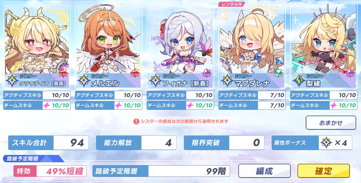| … | 5625/12/05(金)17:16:08No.1379456689+>>光シスター一人もいないんだけど… >レンタルできるよ 他属性10/10開放とトントン程度じゃ差し替える意味あんまりないというか… |