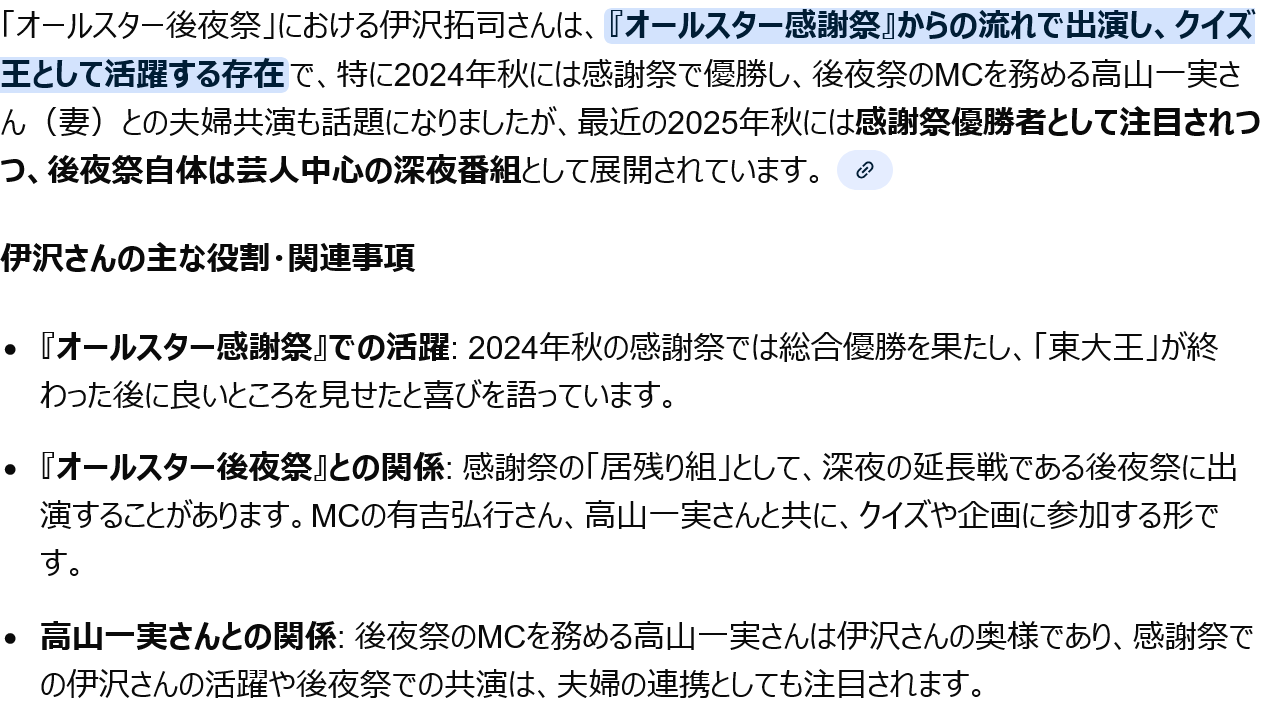 伊沢さんについて知ってることを話せこのスレは古いので、もうすぐ消えます。