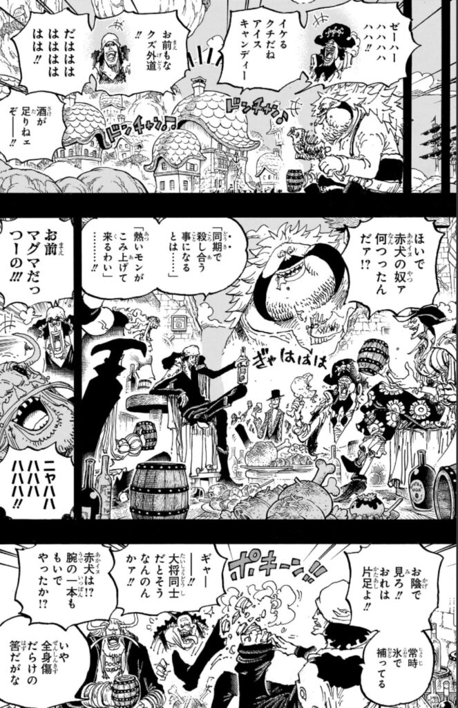 | … | 5025/12/05(金)23:31:57No.1379589285+わりと最近青キジとバスコ・ショットが会話してるシーンで地味に好きなツッコミあったんだけどどんなコマだったか思い出せない |