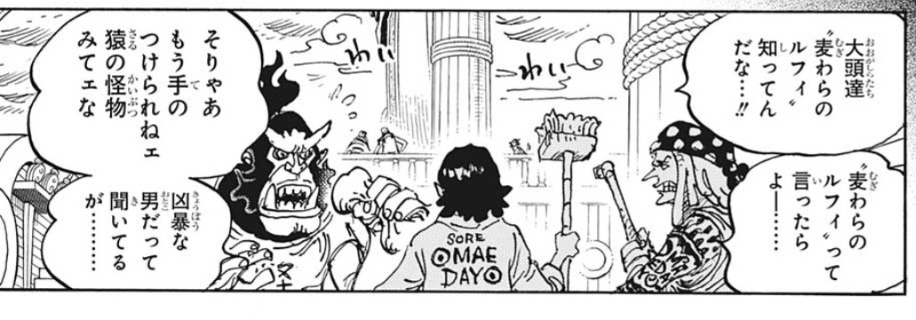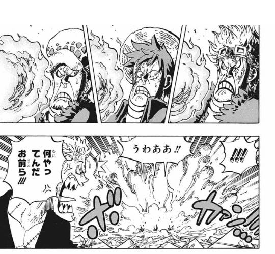 | … | 39625/12/06(土)00:40:38No.1379610678+パンクハザードでケンタウロスのおっさんがルフィを仲間だと思って仲良くしてるとこ |