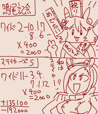 | … | 5425/12/06(土)15:29:23 ID:aLS7qFuANo.1379754733+くーワイドと馬連だけになってしまいました… |