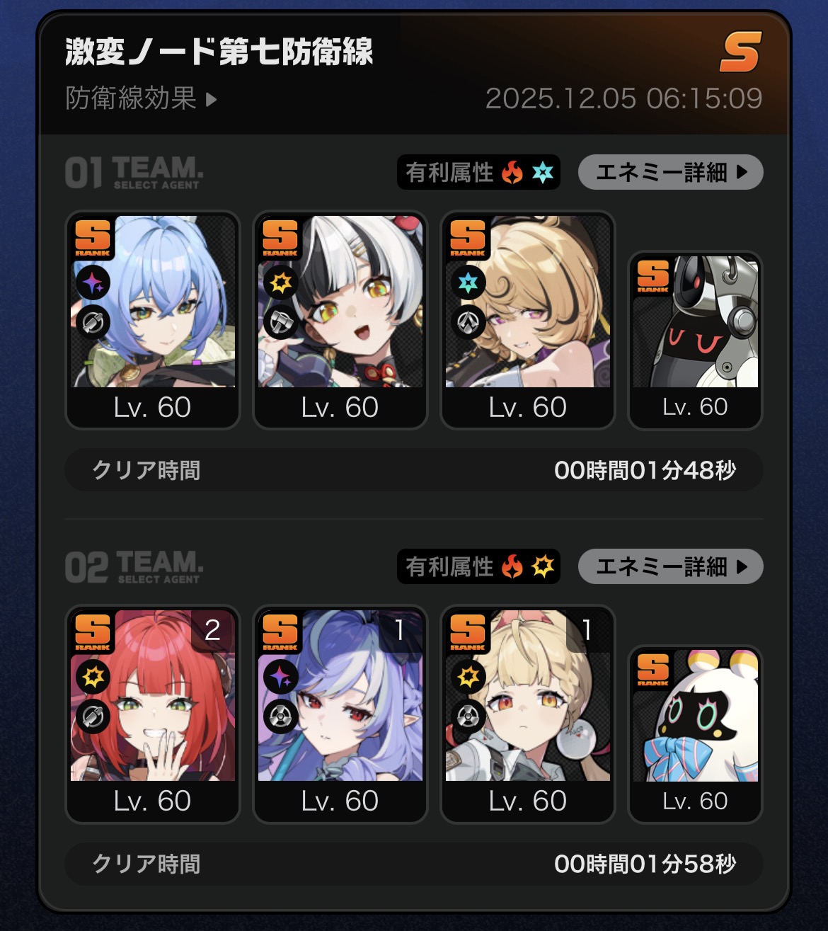| … | 3525/12/07(日)02:33:34No.1379957994+物理と炎に強いエージェントがいないから瞬光ちゃん引いて物理サクサクにしたいンナ |