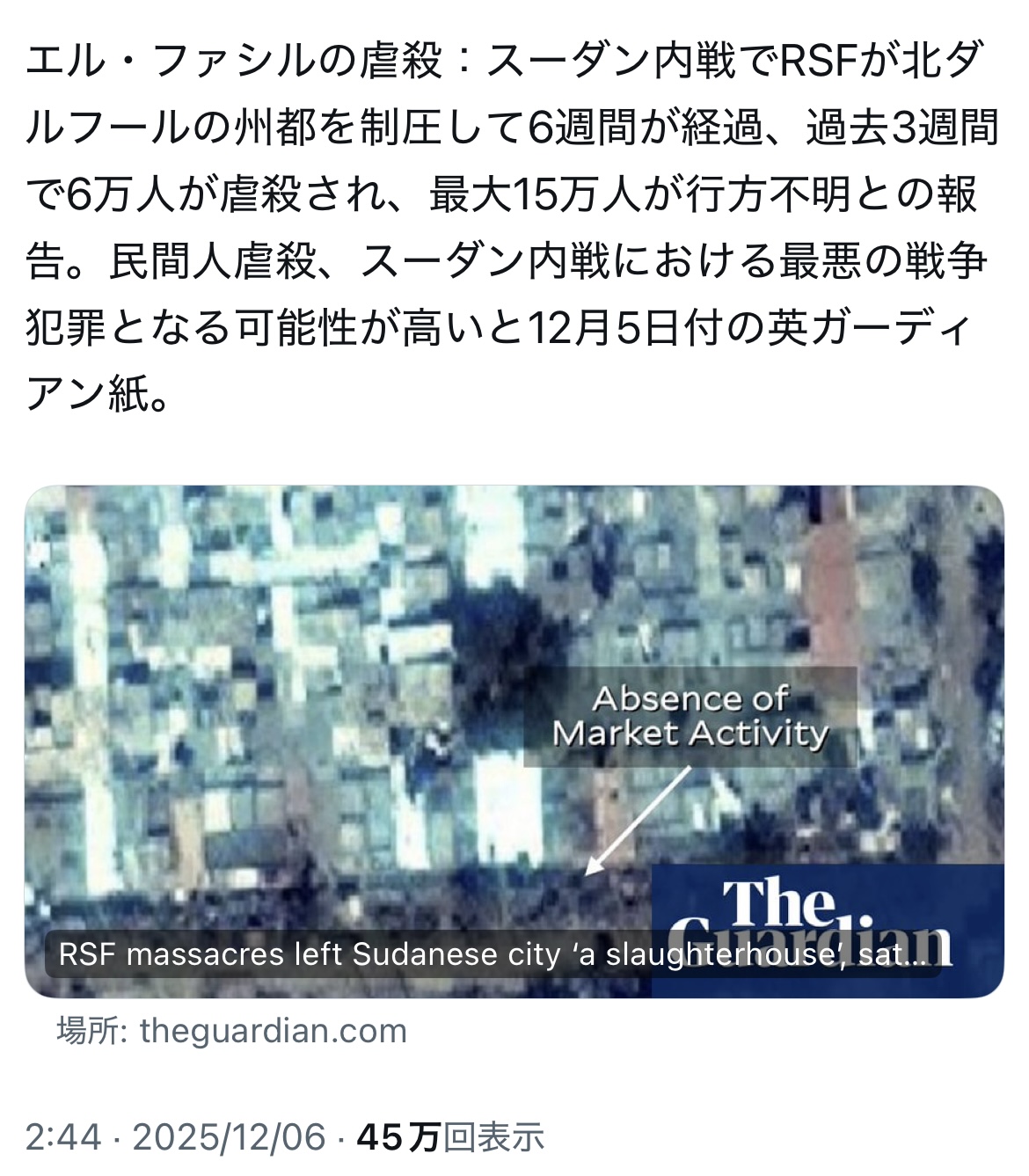 | … | 425/12/07(日)07:56:30No.1379976411そうだねx4南スーダン緊急事態 |