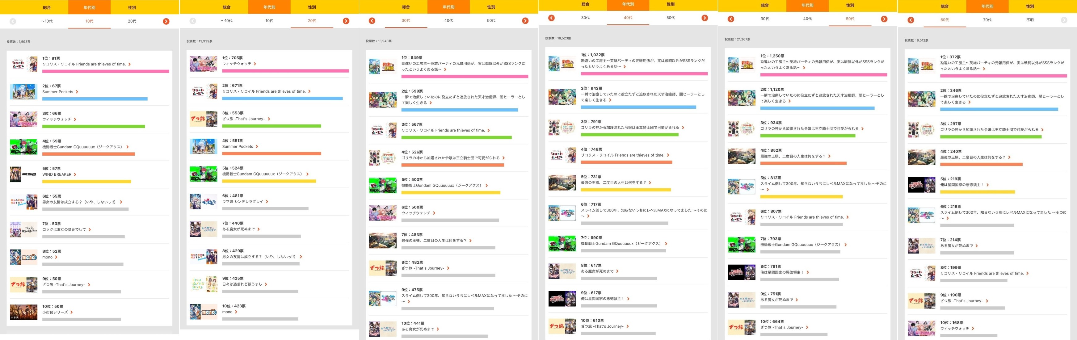3位と4位知らないアニメだった… 見てくるか…