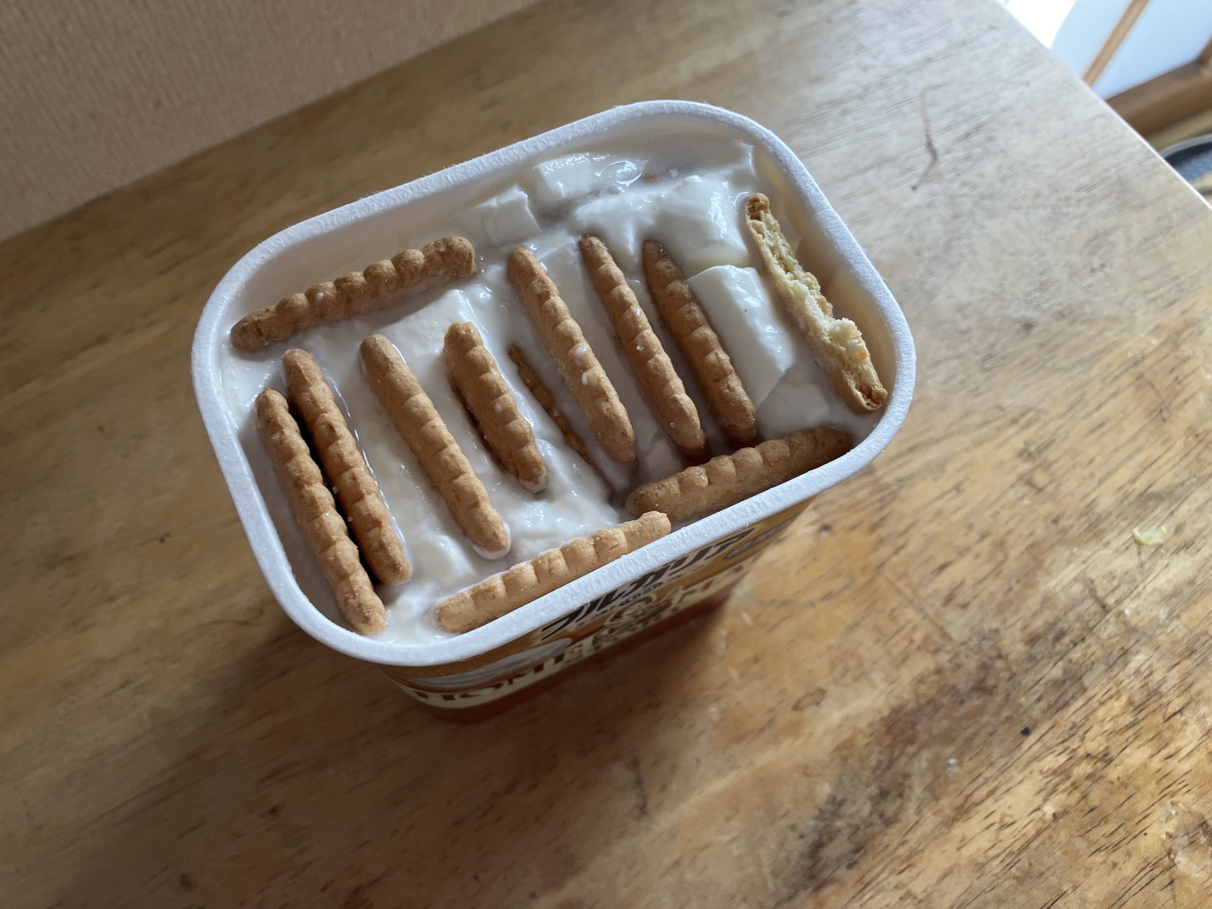 ビスケット砕いてヨーグルトにぶち込むのがお菓子作りか…