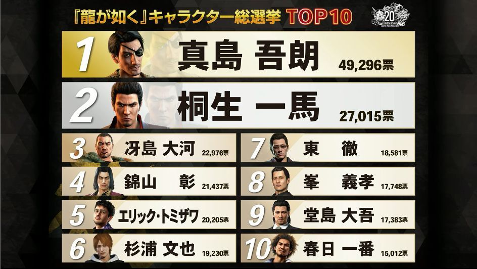 | … | 225/12/08(月)09:00:49No.1380344503そうだねx1人気投票上位10キャラクターが、舞台『龍が如く』に登場します! |
