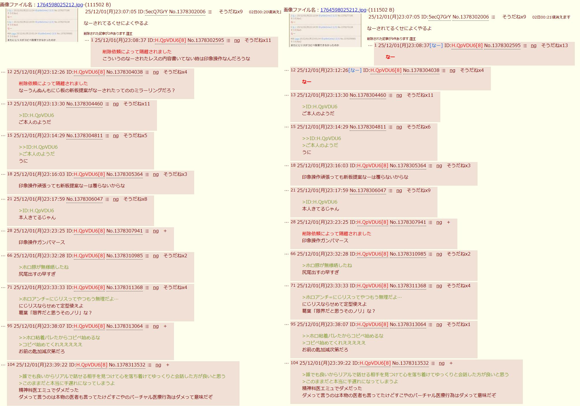 | … | 3725/12/08(月)21:10:21No.1380524056そうだねx6にじ板なーされた!クンリニンサンと心が通じてる!ってはしゃいでたのに自分もなーされたから発狂してるのかな |