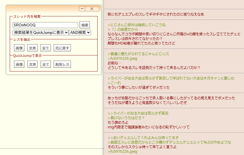| … | 8125/12/08(月)21:18:22No.1380527486そうだねx7>>ここでにじリス云々喚いたところでV関係ないMD荒らして恥かいた事実は消えようがないからな… |