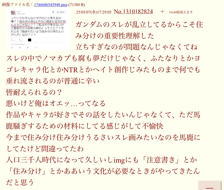 | … | 325/12/09(火)00:38:32No.1380613346+いもげはもっと自治しないとな |