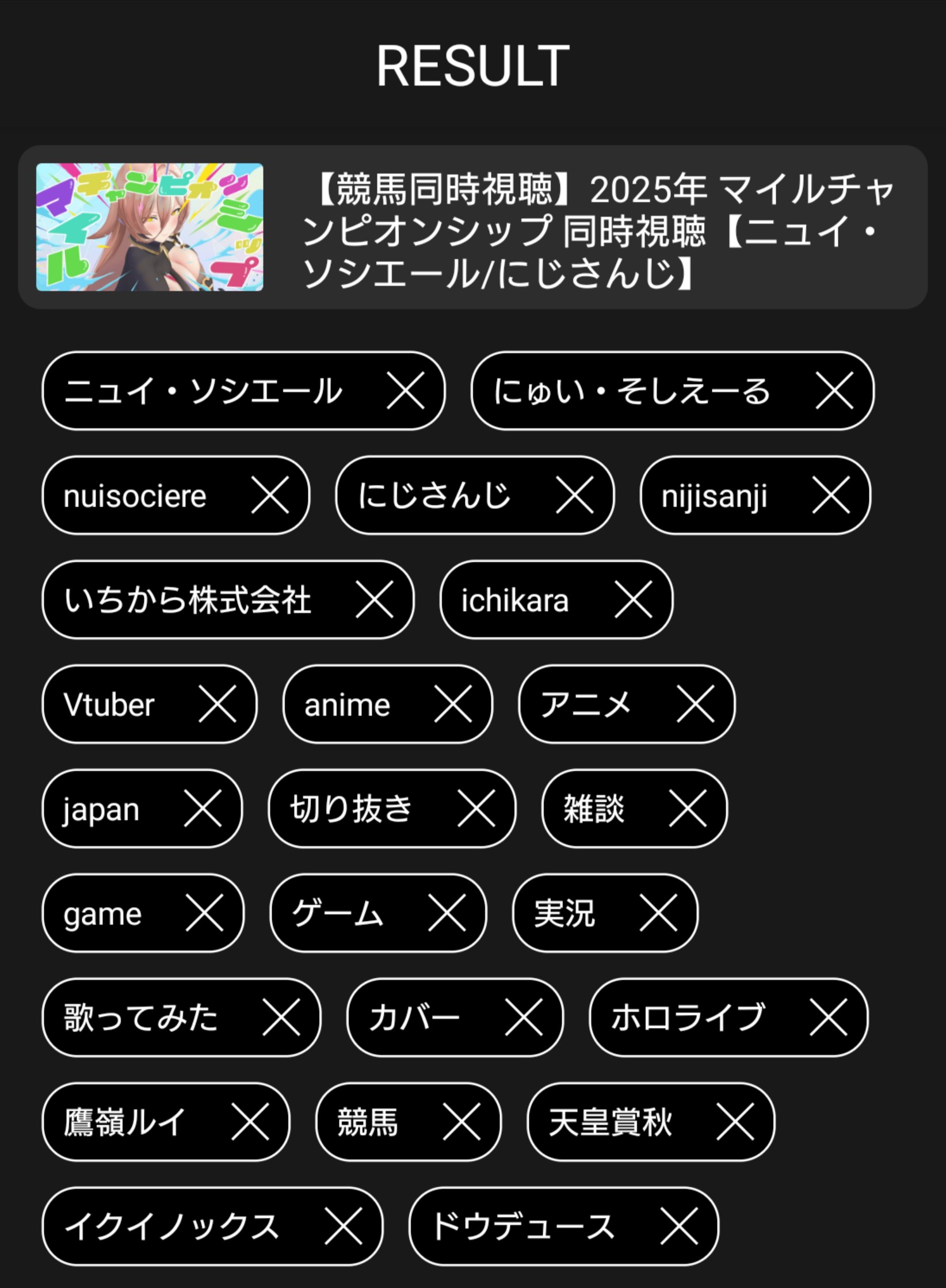 | … | 57325/12/09(火)15:48:50No.1380740640そうだねx2>関係ないけどメタタグににじさんじ含まれてるの表示させない拡張機能ってないもんかね |