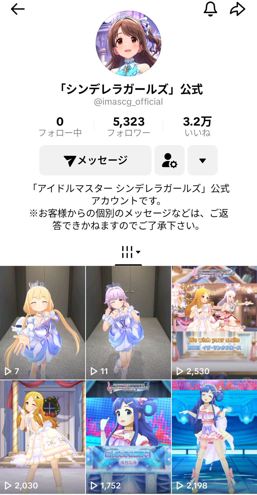| … | 5925/12/09(火)16:58:40No.1380755411+アイマスで公式tiktokアカウントあるのデレとミリだけなはず |