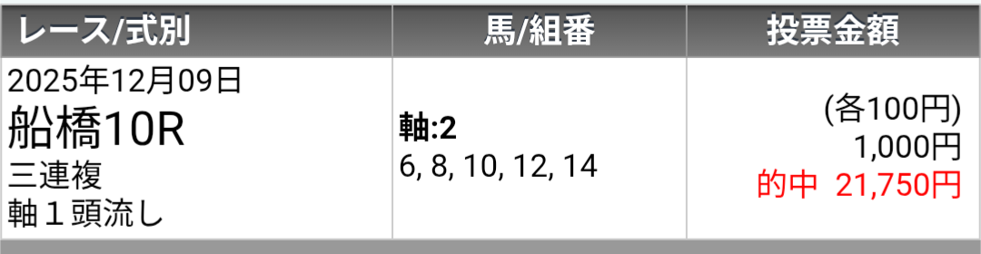 | … | 11525/12/09(火)18:54:08 ID:5Ag4/Wt2No.1380787113+ブレイディヴェーグは穴狙いで買っててよく走ってくれましたがさすがにJCでは厳しかったです |