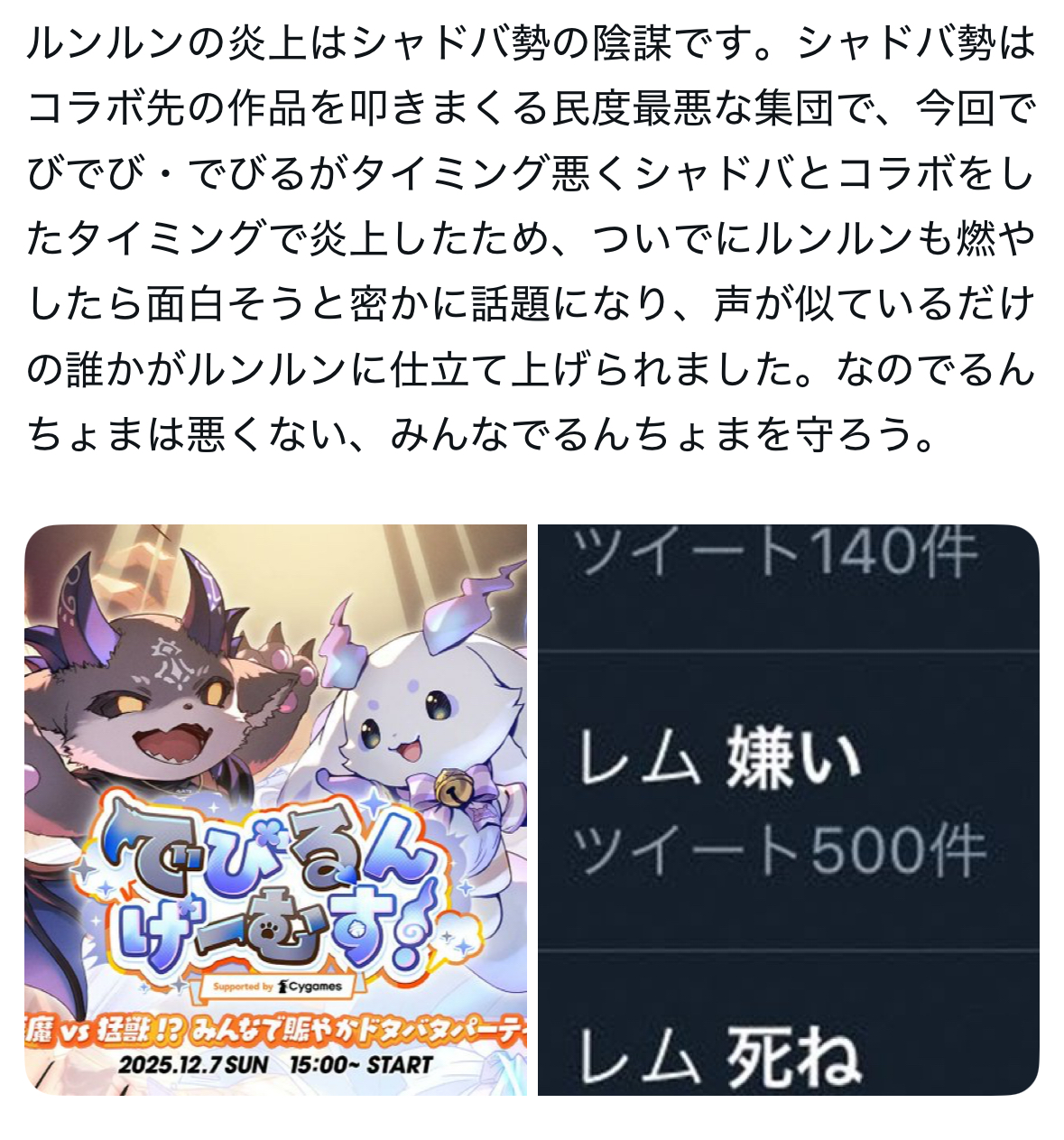 | … | 125/12/09(火)20:20:42No.1380815592そうだねx51るんちょまが告発されたのでびが炎上する前だけど |