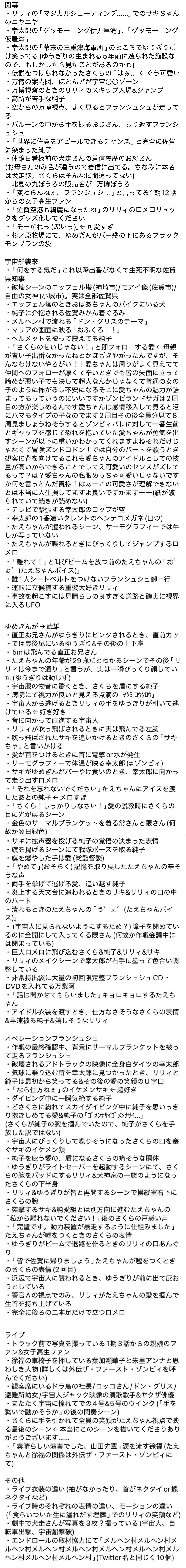 | … | 15325/12/09(火)23:11:06No.1380881252+終盤のライブ2曲目でたえの異変に気付いたさくらが震え声になりながらサビを熱唱してるのいいよね |