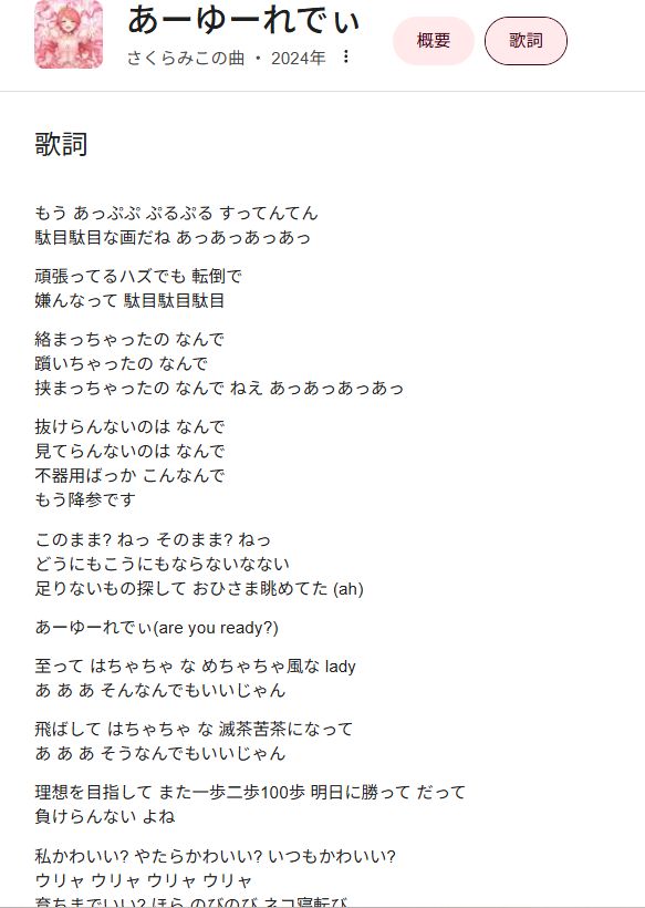 | … | 1025/12/09(火)23:54:57No.1380896078+>ニャンドモの歌詞が短文荒らしみたいって言われてるの見かけてちょっと笑ってしまった |