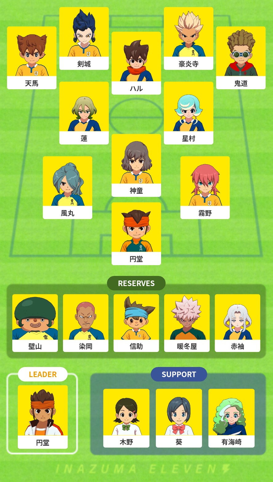 | … | 7925/12/10(水)01:06:48No.1380913919そうだねx3>せっかくだしいつか初代GOヴィクトリーの雷門を混ぜた雷門オールスターみたいなチームを組もうと思っているでやんすがこんな感じならコンセプト理解されるでやんすかね? |
