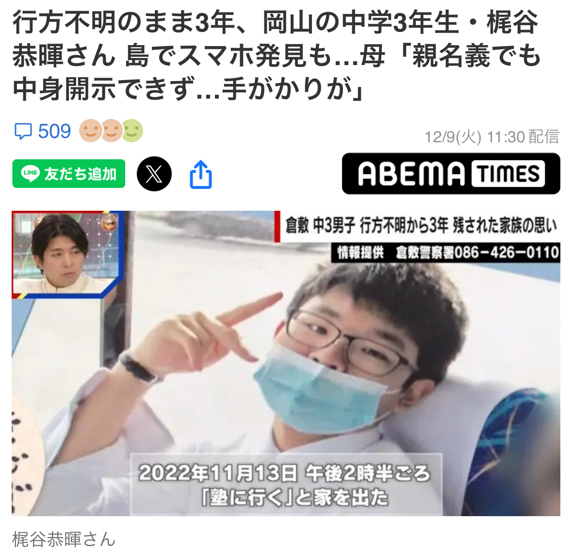 | … | 2025/12/10(水)05:48:53No.1380933035そうだねx21>成人なら自分の意志で失踪しただけかも…はわかるんだけど |