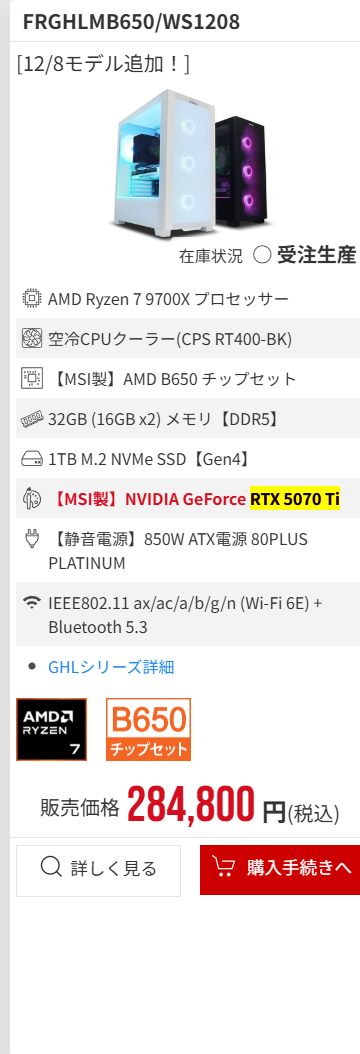 | … | 2525/12/10(水)23:37:08No.1381193829+RAM32以上に5070以上ならどれ選んでも数年は戦えるだろう |