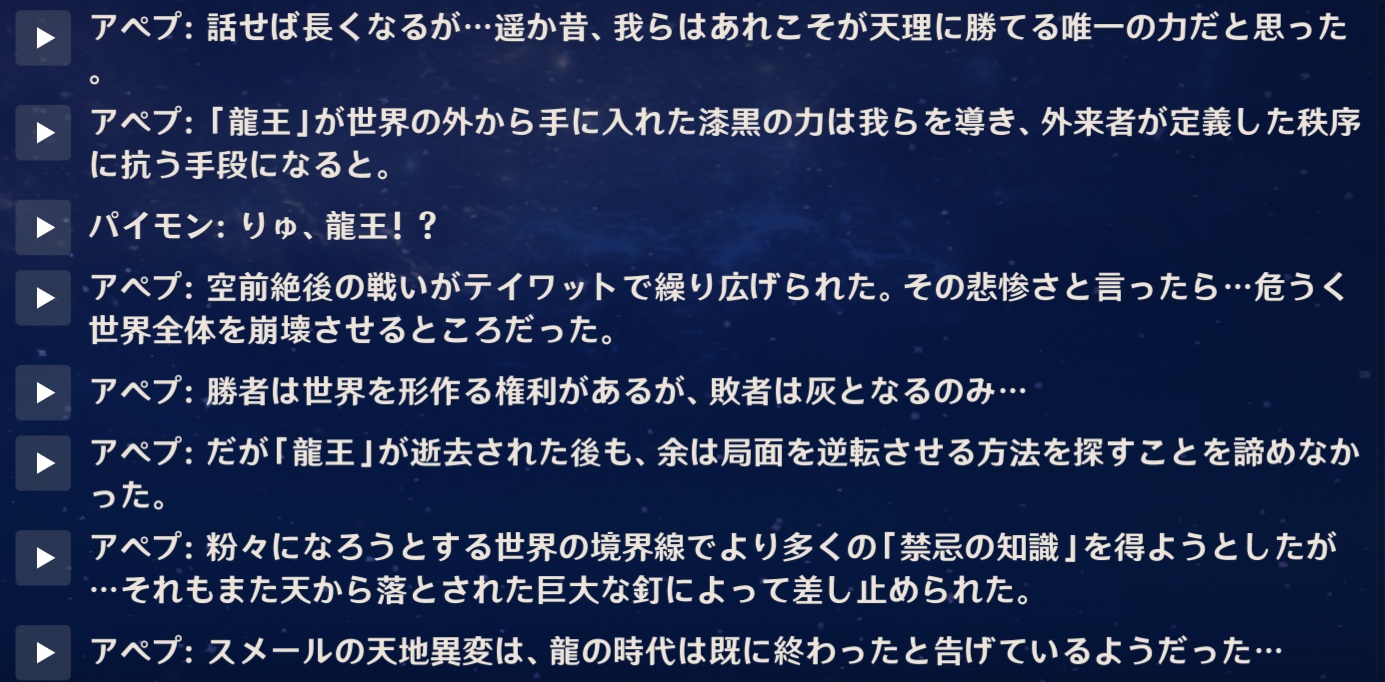 | … | 10725/12/11(木)23:18:53No.1381505717+>そもそもの話OPで飛んで天理っぽいのと戦ってたけど実際テイワットに落ちてきてからの記憶となんかちょっと食い違ってるしOPのアレ全然わかんねえぜぇ |