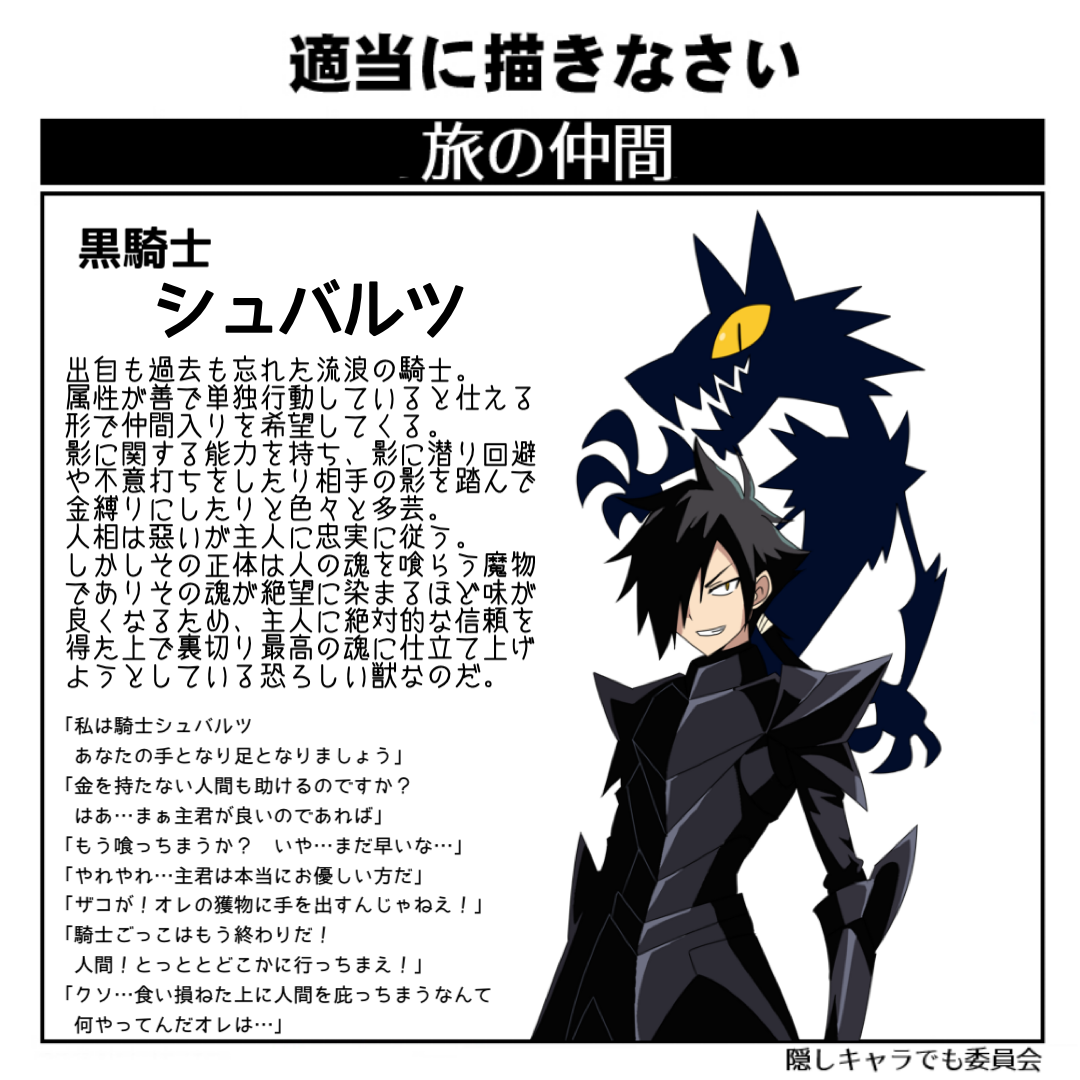 | … | 2325/12/13(土)15:09:28No.1382019610+人を騙して魂を喰らう薄汚い魔物をあいつは騎士と呼んでくれた! |